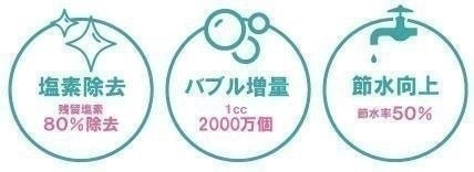 トルネードスティックを装着する事で、スティック内部にトルネード水流が発生し、気泡発生量が増加。ミラブルplusのミスト水流には1cc(小さなサイコロ1個)中に約2000万個のウルトラファインバブルが含まれています。